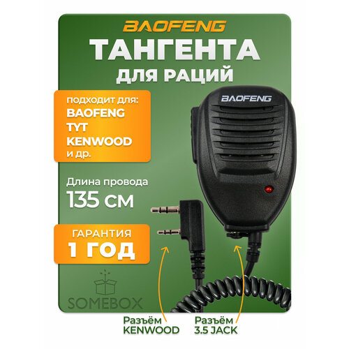 Тангента (выносная гарнитура) для рации Baofeng, Kenwood, TYT, Wouxu, черная