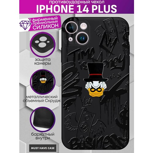 Чехол на iPhone 14 Plus Скрудж на чёрном фоне