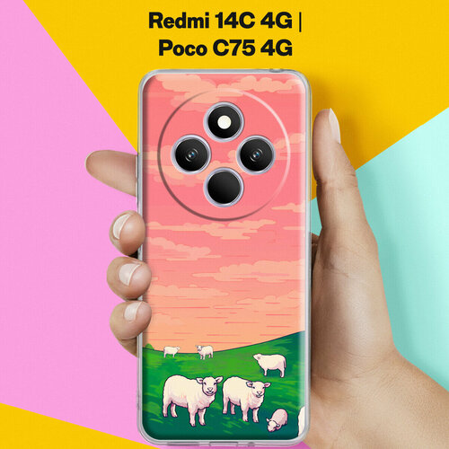 Силиконовый чехол на Xiaomi Redmi 14C 4G / Poco C75 4G с принтом "Овечки" с прозрачными бортиками