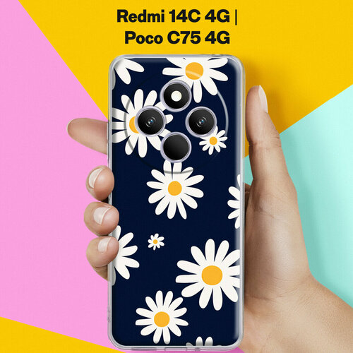 Силиконовый чехол на Xiaomi Redmi 14C 4G / Poco C75 4G с принтом "Ромашки на Темном" с прозрачными бортиками