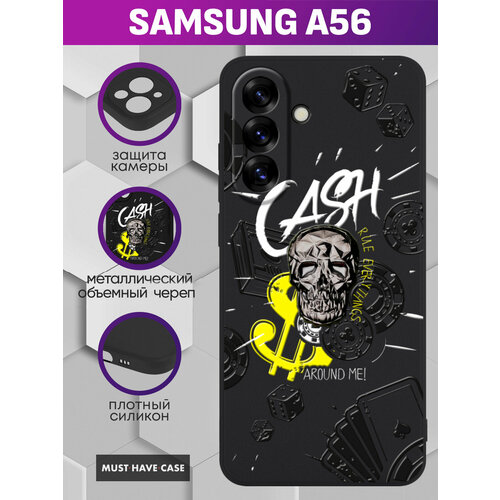Чехол на Samsung A56 с Металлическим Черепом с желтым принтом