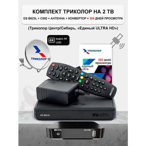 Комплект Триколор на 2 тв GS B523L/B623L/B626L + С592 + Антенна 0,55 + конвертер + 365 дней (тариф 2500)