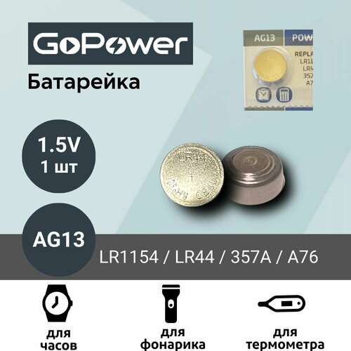 Батарейка GoPower AG13 (LR1154, LR44, 357A, A76) Alkaline 1.55V (1 шт)
