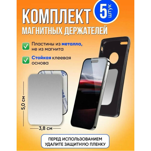 Металлическая пластина для магнитного автомобильного держателя 5шт, комплект серебристый/серый