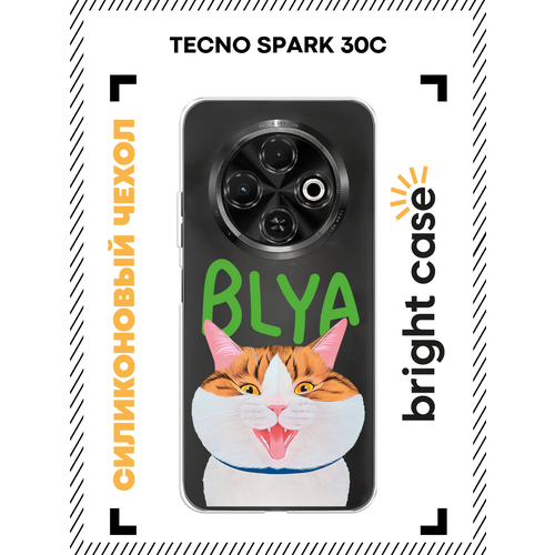 Чехол на Tecno Spark 30C / Текно Спарк 30C с принтом Белый котик с надписью, прозрачный