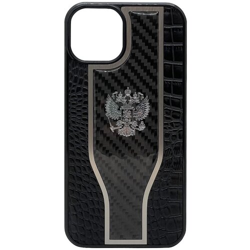 Чехол с гербом РФ кожа-карбон Wave для iPhone 14 Plus, iGrape (Черный)