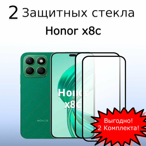 2 КОМПЛЕКТА Стекло защитное противоударное для Honor x8c / Хонор х8с Черная рамка