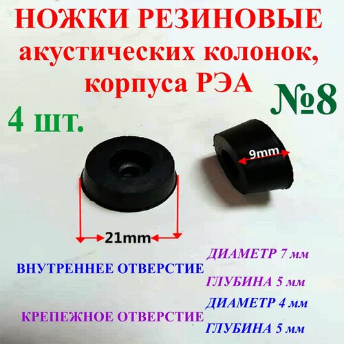 4 шт. 21х9 мм Ножки резиновые, акустических колонок, корпуса РЭА. Диаметр-21мм, высота-9мм, №8