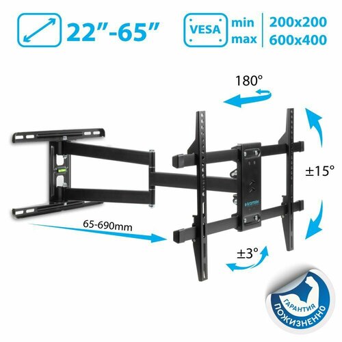 Кронштейн для телевизора настенный наклонно-поворотный Kromax ATLANTIS-45W 22"-65" 45 кг Atlantis-45