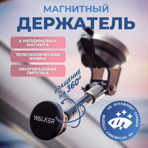 Магнитный выдвижной держатель для телефона на присоске WALKER WCX-12, аксессуары для машины, подставка, кронштейн, крепление в авто, автотовар