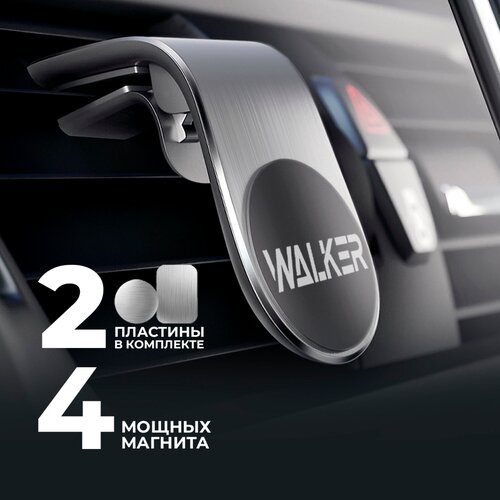 Магнитный держатель для телефона на воздуховод, WALKER, WCX-04, аксессуары для машины, подставка, кронштейн, крепление в авто, автотовар, серебряный
