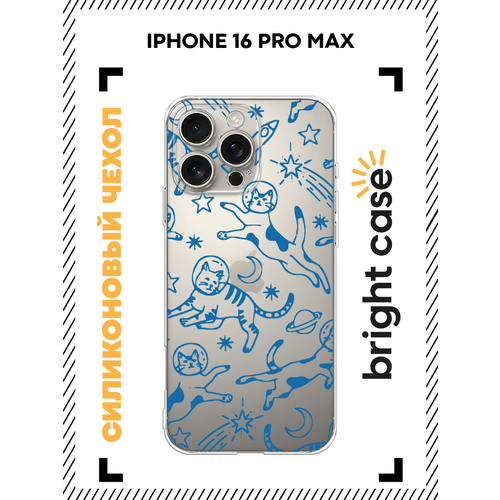 Чехол на Apple iPhone 16 Pro Max / Айфон 16 Про Макс с принтом Котики космонавты, прозрачный