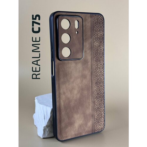 Чехол кожаный на Realme C75 / Чехол на Реалми С75 с защитой камеры, геометрия