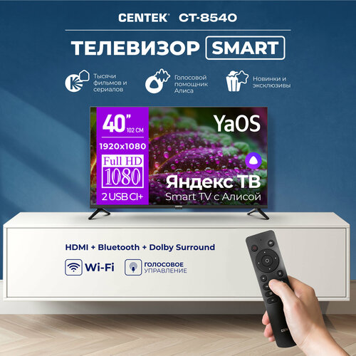 Телевизор CENTEK CT-8740 40_LED SMART, FullHD, Wi-Fi, Bluetooth, YaOS