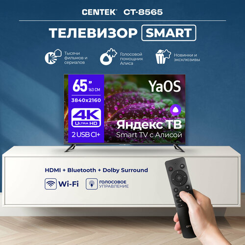 Телевизор CENTEK CT-8565 65_LED SMART, 4K UltraHD, Wi-Fi, Bluetooth, YaOS