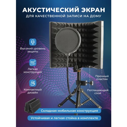 Акустический экран для микрофона, 3-х секционный, стойка в комплекте