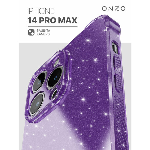 Айфон 14 Про Макс противоударный фиолетовый с блестками Чехол iPhone 14 Pro Max