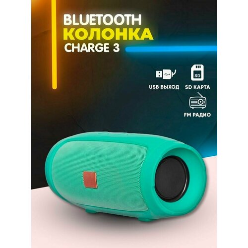 Колонка портативная беспроводная / Блютуз колонка, мощность 10Вт, 2 динамика, с FM радио, USB, AUX, 1200мАч (до 5 часов работы) бирюзовый