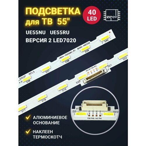 Подсветка для ТВ Samsung 55" UE55NU7300U UE55NU7170U UE55NU7120U UE55NU7100U UE55NU7140U / Версия 2, LED 7020 (комплект 2шт)