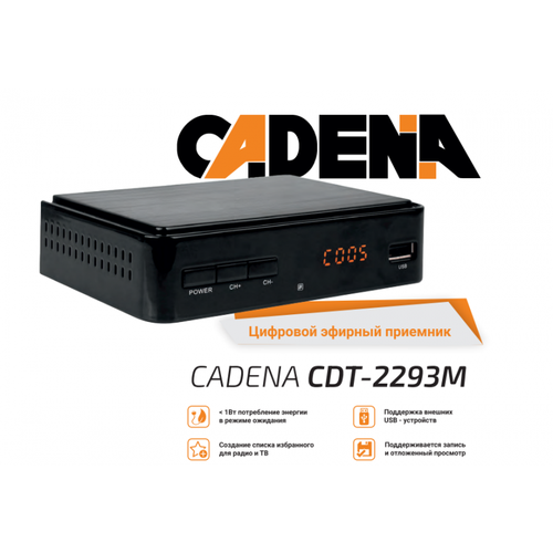 1,5В AAA – 2штЦифровой эфирный приёмник CADENA CDT-1793 со встроенным тюнером DVB-T2 предназначен для приёма открытых каналов эфирного вещания высокой четкости.