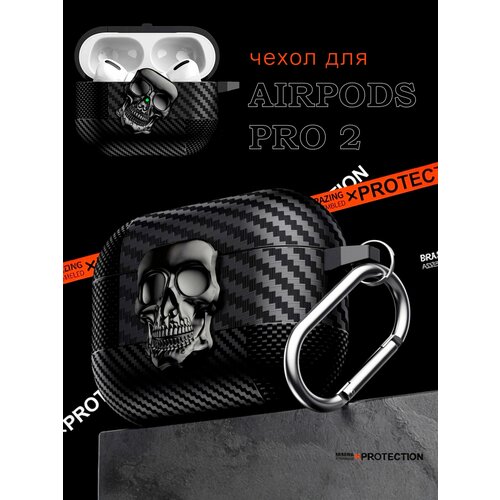 Чехол для наушников AirPods Pro 2 ( на Аирподс Про 2 ) под карбон с замком "Череп", TPU