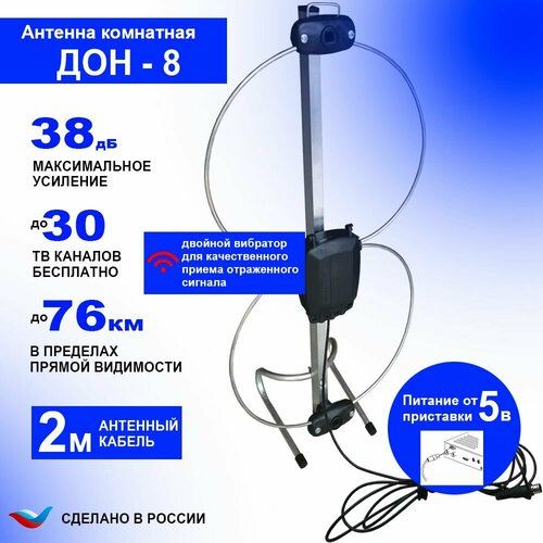 Антенна для цифрового тв комнатная для телевизора Дон 8 , активная для бесплатного цифрового телевидения / Усилитель 105 5В антена для помещения