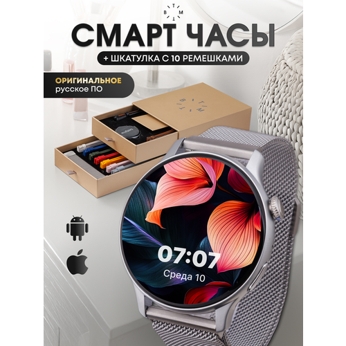 Смарт часы женские круглые, умные наручные с функцией звонка для iOS и Android, водонепроницаемые