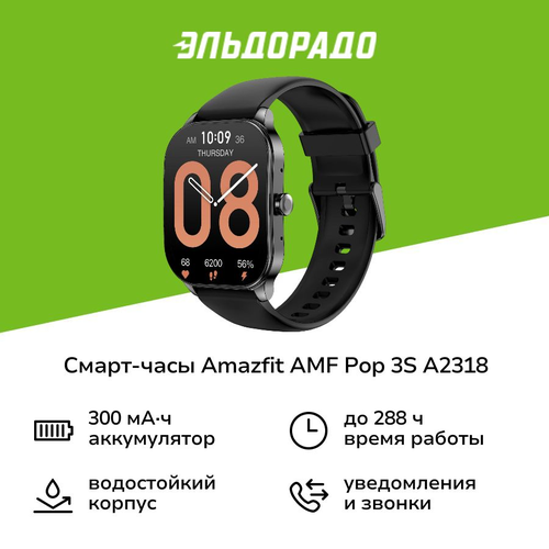 Смарт-часы Amazfit AMF часы Pop 3S A2318 Black (AMF-6972596107088)