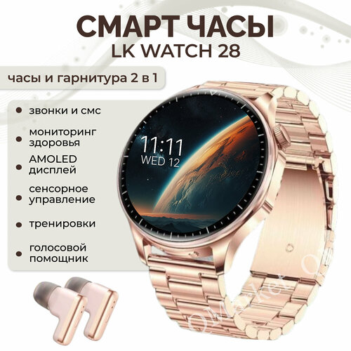 Cмарт часы LK WATCH 28 / Умные часы c наушниками iOS Android Bluetooth Звонки Уведомления Наушники, золотистые