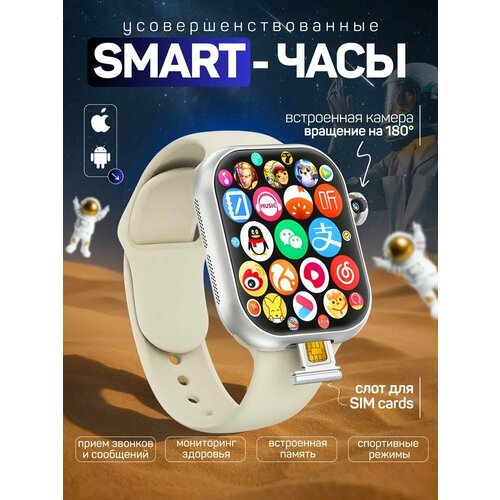 Смарт-часы с SIM картой, 2.06 Amoled HD-экран, Камера для Видеозвонков, Сенсор отпечатков пальцев, Серебро