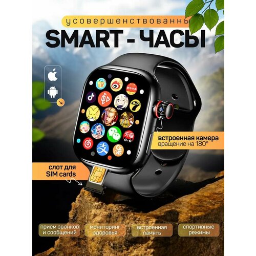Смарт-часы с SIM картой, 2.06 Amoled HD-экран, Камера для Видеозвонков, Сенсор отпечатков пальцев, Черные