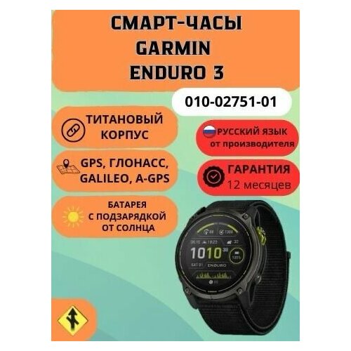 Смарт - часы Garmin ENDURO 3 с черным титановым безелем DLC, черным нейлоновым ремешком UltraFit ( 010-02751-01 )