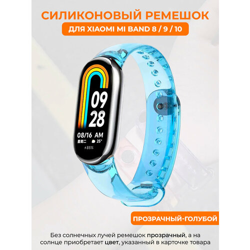 Силиконовый ремешок для Xiaomi Mi Band 8/ 9, меняет цвет на солнце, прозрачный-голубой