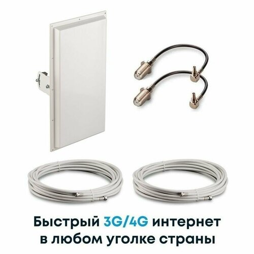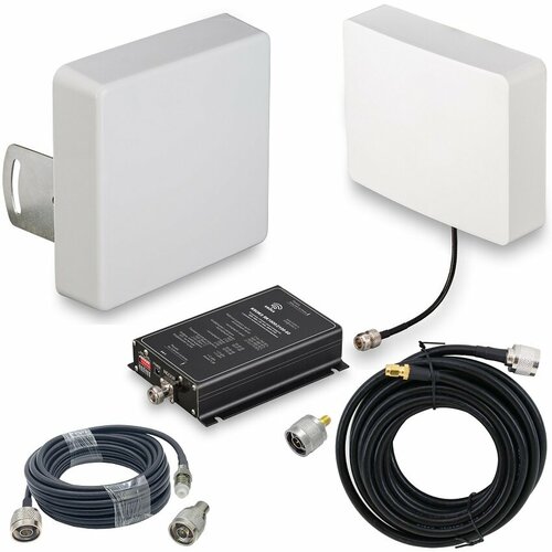 Комплект усиления 1800/2100 МГц сигнала сотовой связи и мобильного Интернета: регулируемый репитер 4G LTE / 3G / 2G + антенны 25 дБи + кабели 15 м