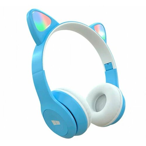 Детские беспроводные наушники с кошачьими ушками, светящиеся More choice HW25kids голубые