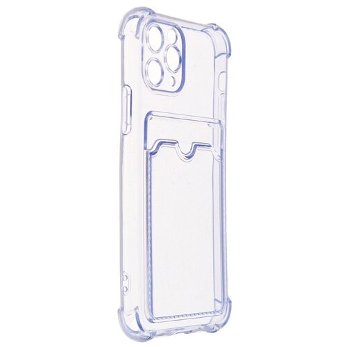 Защитный силиконовый чехол LuxCase с картхолдером для пластиковых банковских карт, светло голубой прозрачный бампер с кармашком на Apple iPhone 11 Pro