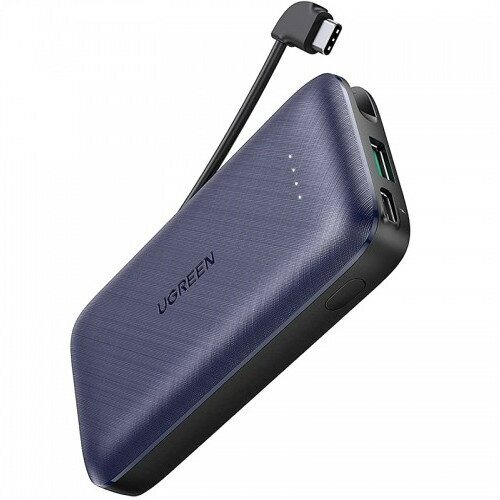 Внешний аккумулятор UGREEN PB172 (80917) Power Bank PD 20W 10000mAh со встроенным кабелем USB-C тёмно-синий