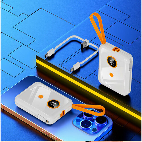 Портативный аккумулятор Konfulon 10000mAh, 30 W, встроенный кабель Type-C
