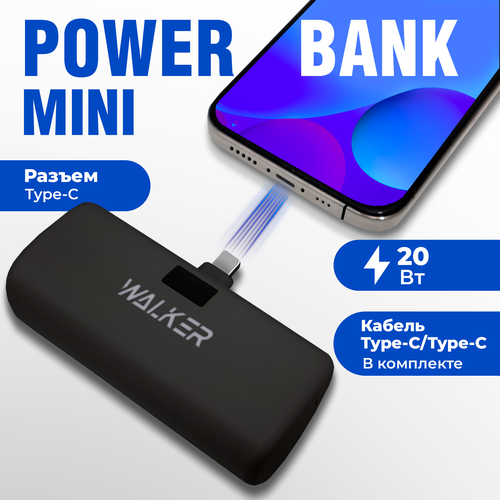 Повербанк для айфона, 20Вт, 5000 mAh, WB-965-TYP/BK, WALКЕR, powerbank, внешний аккумулятор для телефона, пауэр банк xiaomi, power bank