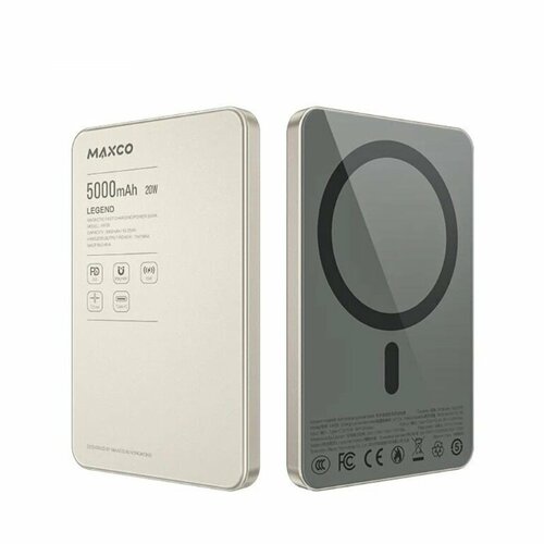 Внешний аккумулятор Maxco с беспроводной зарядкой, 5 000 мАч, Qi/PD20, Natural Titanium