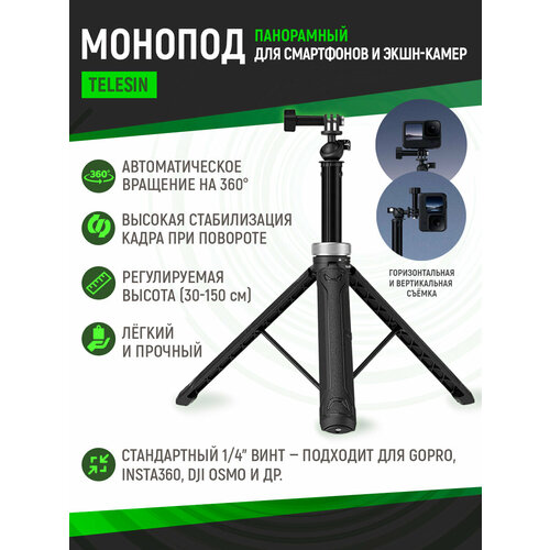 Монопод 2-in-1 Invisible Selfie Stick + Tripod Telesin (панорамный) для экшн-камер, S1-TSS-01