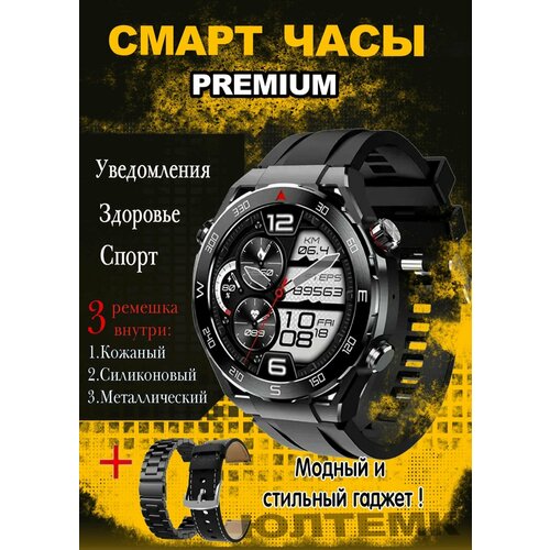 Умные часы Smart Watch /с 3 ремешками/Экран 1.52/ множество функций/For real men/стильный дизайн/черный