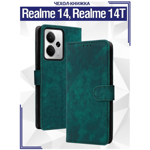 Чехол книжка для Realme 14 (5G)/ Realme 14T (5G) с магнитной застежкой / Реалми 14, Реалми 14Т c отделением под карты (зеленая)