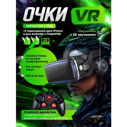 Очки виртуальной реальности, беспроводные, Bluetooth, с геймпадом и наушниками, чёрные