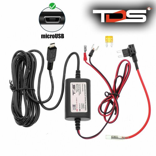 Скрытая проводка для видеорегистраторов, установочный кабель питания microUSB TDS TS-CAU65 2.5 метра