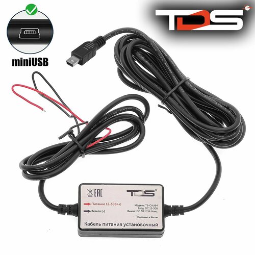 Скрытая проводка для видеорегистраторов, установочный кабель питания miniUSB TDS TS-CAU64 2.5 метра