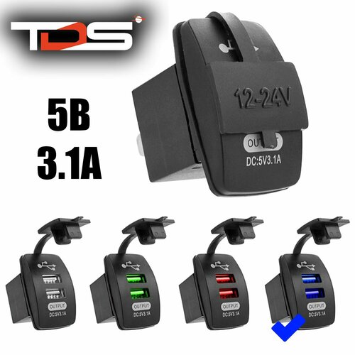 Автомобильная розетка на 2 порта USB 12V-24V с предохранителем и скрытым монтажом TDS TS-CAU46 Синяя