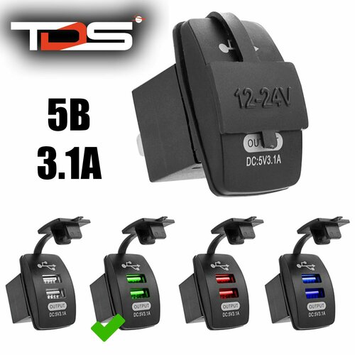 Автомобильная розетка на 2 порта USB 12V-24V с предохранителем и скрытым монтажом TDS TS-CAU46 Зеленая