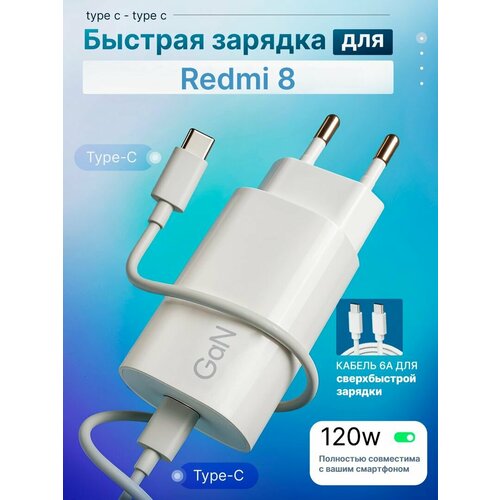 Зарядное устройство для телефона Redmi 8 (Редми 8) / Быстрая зарядка на Android, блок питания 120W с кабелем 6A, Type-C / Type-C