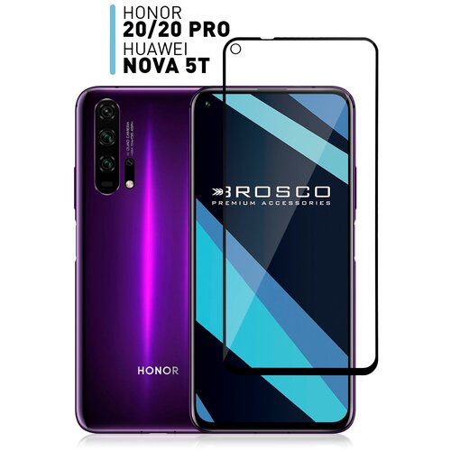 Защитное стекло Rosco на Honor 20, 20 Pro и Huawei Nova 5T (Хонор 20 и 20 Про, Хуавей Нова 5Т), с чёрной рамкой, 1 шт
